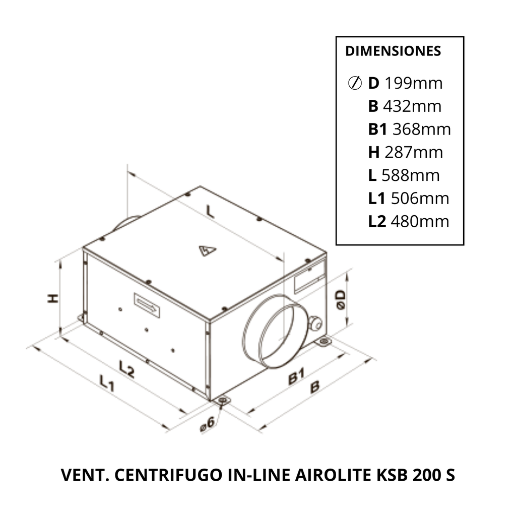 Airolite KSB 200 S – Ventilador Centrífugo en Línea con Aislamiento Acústico y Motor de Alta Potencia