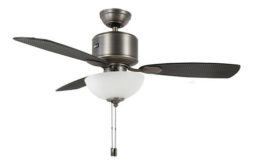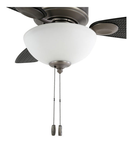 Este ventilador cuenta con motor reversible para usarlo tanto en verano refrescando con corriente descendente como en invierno redistribuyendo el aire caliente hacia arriba, optimizando el consumo energético de tu hogar. Su motor WhisperWind® de 3 velocidades asegura un funcionamiento silencioso, creando un ambiente de confort sin interrupciones. La operación es mediante cadenas de tracción (piolas) para encendido y ajuste de velocidad.